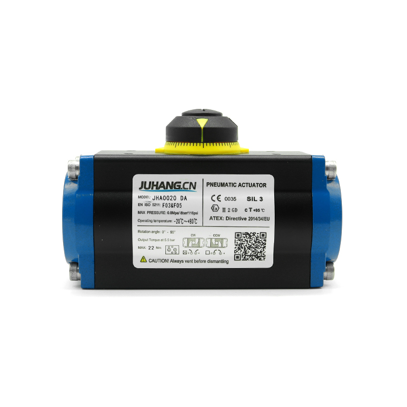 Rack dan pinion pneumatik aktuator akting ganda JHA0020DA memiliki karakteristik di bawah ini: